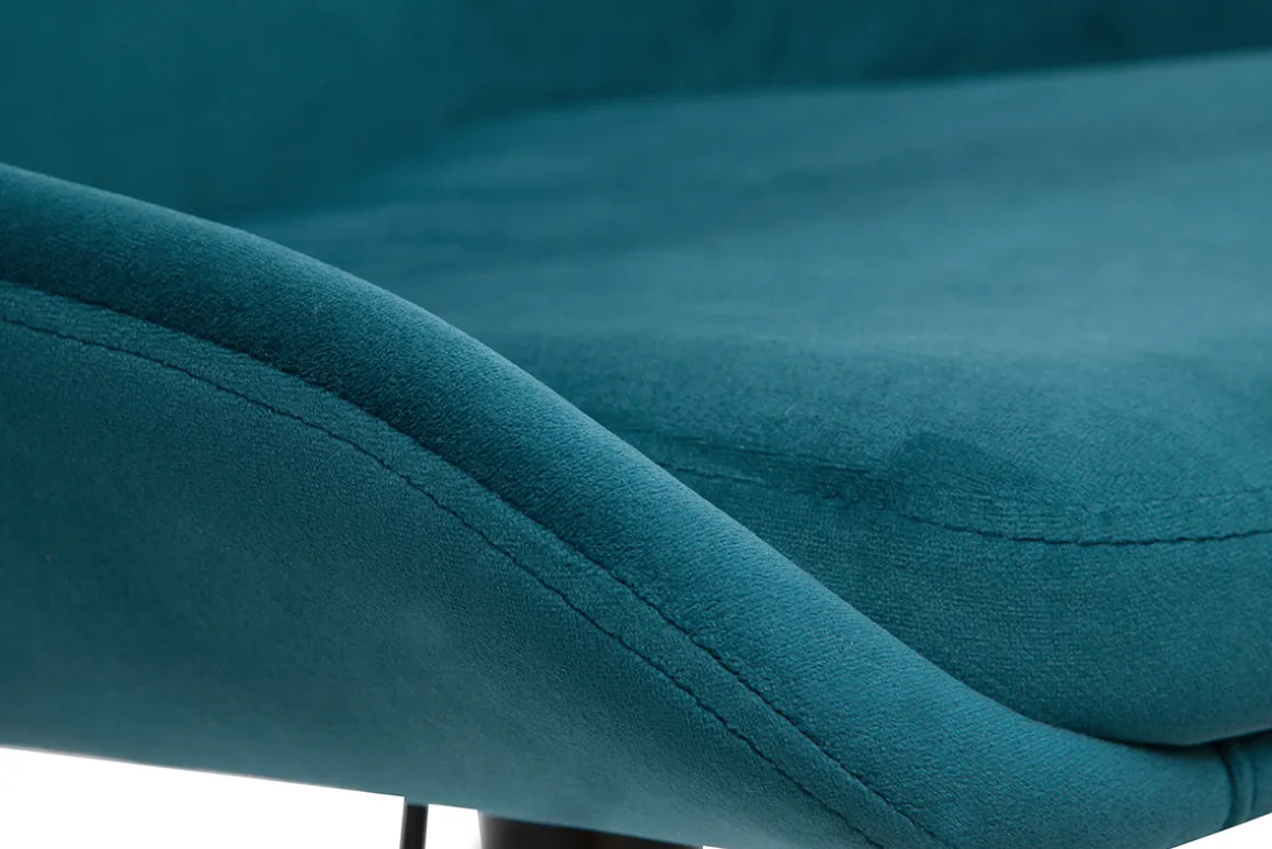 En plus d’être parfaitement fonctionnels, les tabourets de bar HOLO offrent un vrai confort d’assise grâce à leur coque enveloppante. L’assise et le dossier sont rembourrés (densité mousse 24 kg/m3) et entièrement recouverts d’un magnifique tissu velours bleu pétrole (100% polyester) ultra doux au toucher. Le dossier haut (H38 cm) et le repose-pied intégré renforcent un peu plus l’idée de confort.