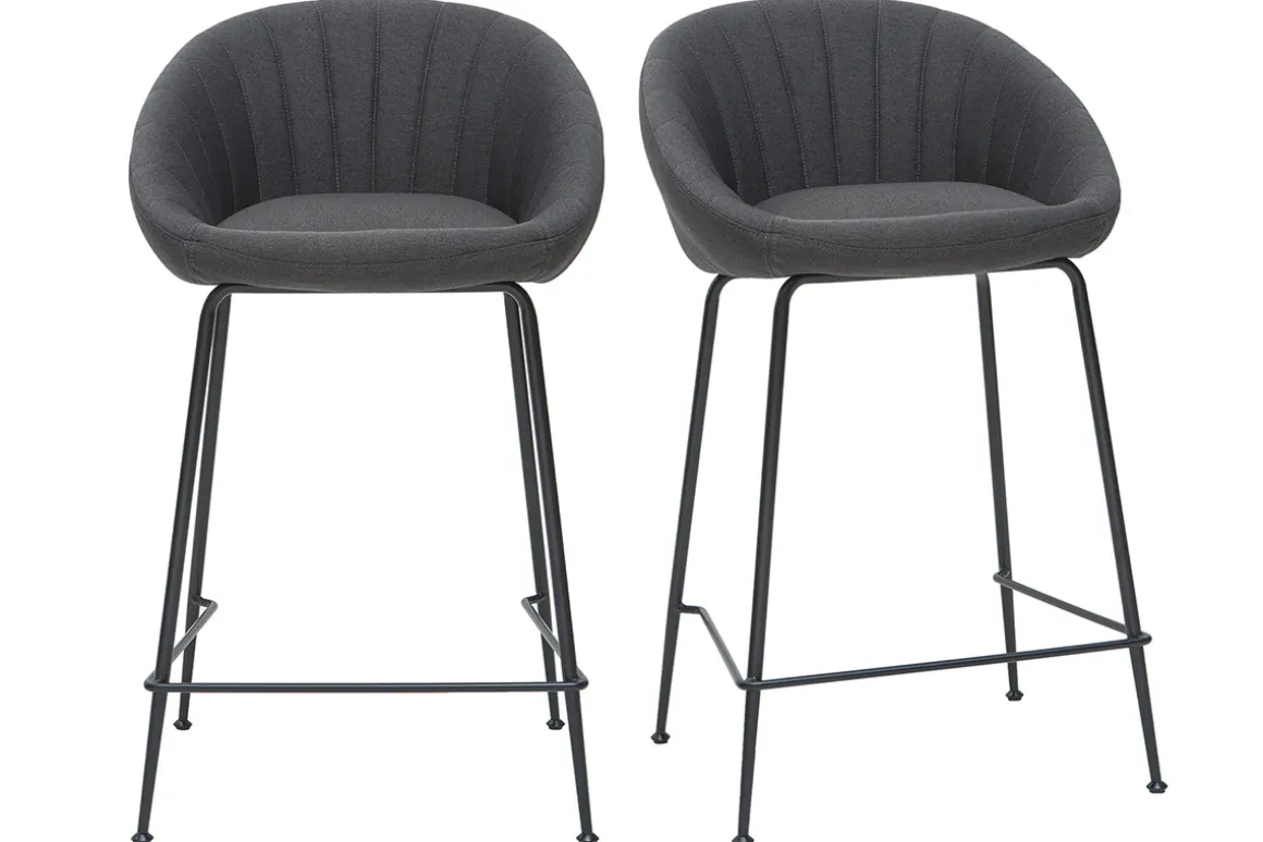 Avec leur assise tout en courbes et leur ligne épurée, ces tabourets hauts sont de beaux sièges design. Ils marient à merveille une assise en tissu gris, travaillée tout en douceur, avec un piètement en métal ultra fin. C’est cette finesse et ce soin accordé aux détails qui font le charme de ces tabourets de bar.