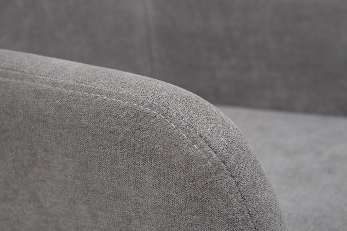 On aime particulièrement le contraste entre le piètement luge en métal noir très élancé et l’enveloppante assise rembourrée et moelleuse à souhait. L’assise et le dossier sont entièrement recouverts d’un joli tissu 100 % polyester à l’aspect et au toucher velours très doux.