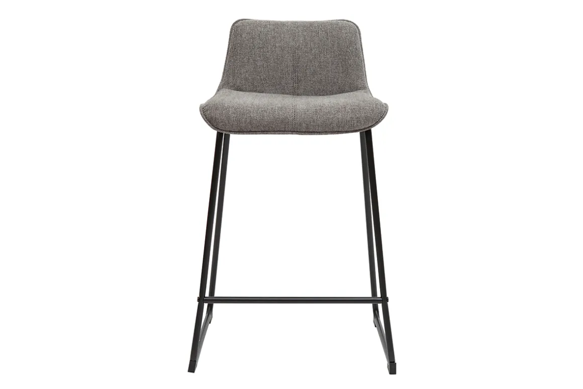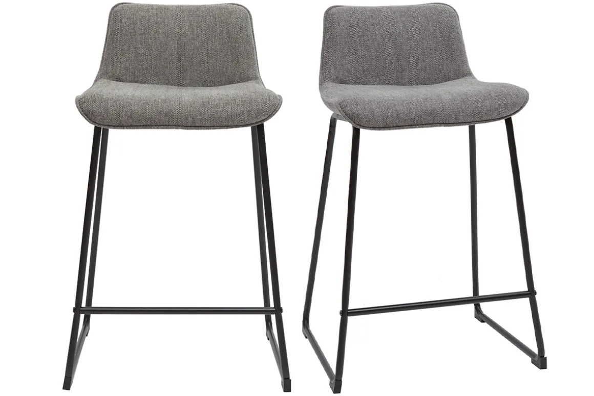 Tabourets de bar en tissu effet velours texturé gris et métal H65 BOOST vendus par lot de 2. Livrés prêts à assembler.