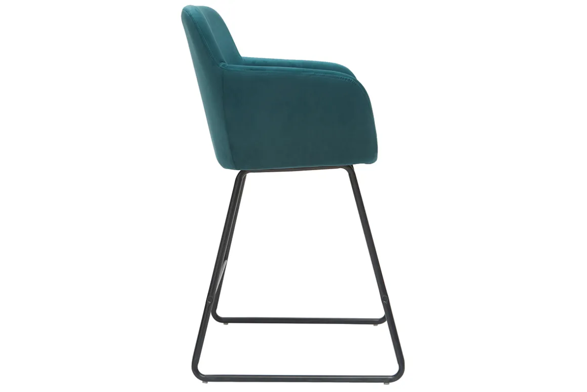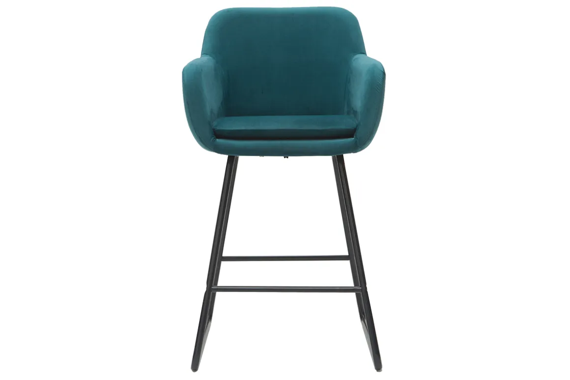 Chaises de bar en velours bleu pétrole vendues par lot de 2 et livrées prêtes à assembler.
