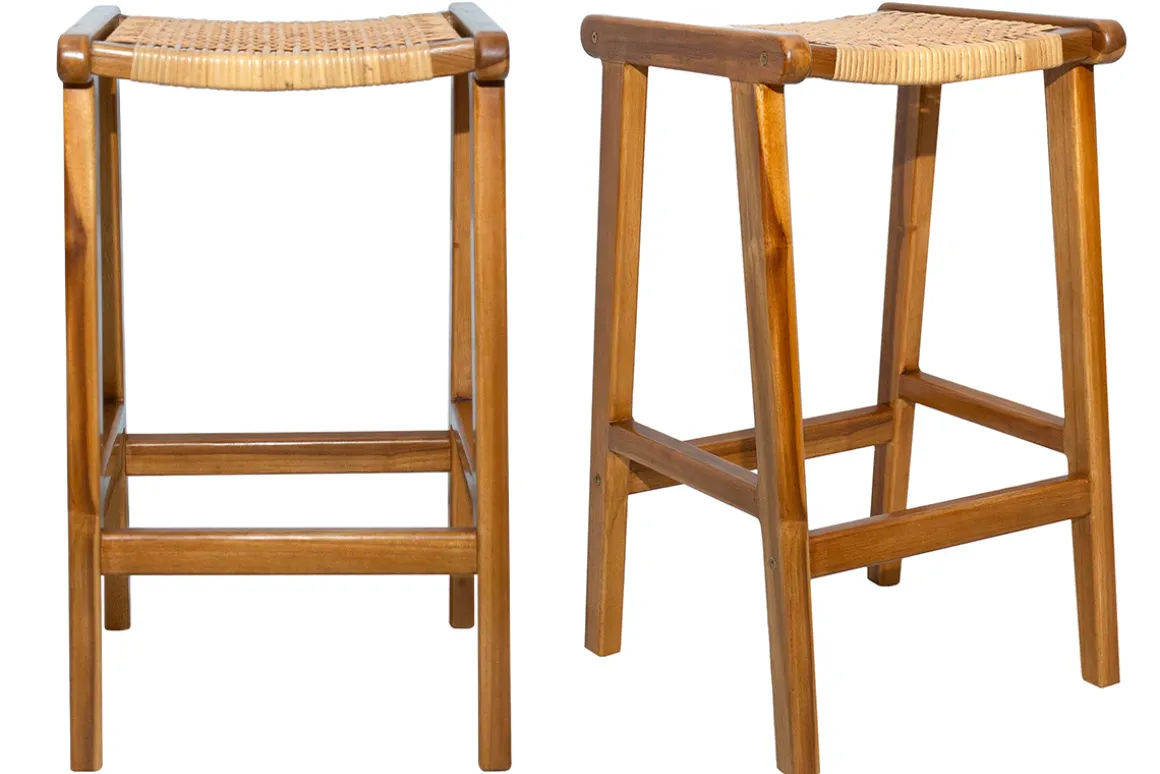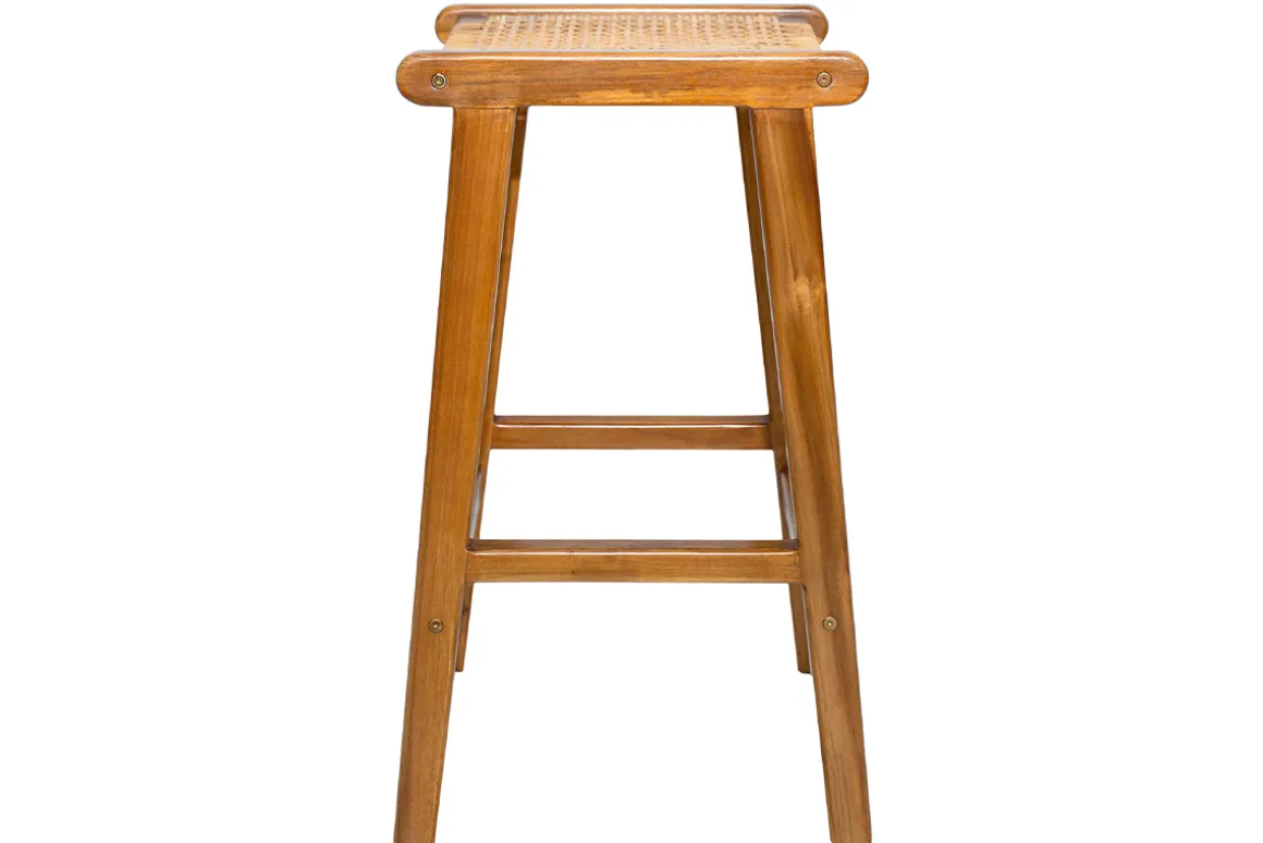 Simplicité et fonctionnalité, caractérisent les silhouettes tout en sobriété de ces tabourets de bar en bois massif. Si l’assise s’habille de la douceur du cannage de rotin, la structure quant à elle, voit ses lignes franches sublimées par le teck massif. Privilégiée pour le mobilier d’extérieur, cette essence de bois exotique, imputrescible et très résistante, offre de sublimes variations de jaune doré et de brun orangé. Tabouret de bar sans dossier, le modèle GAWA, ajoutera une touche nomade à une déco ressourçante qui évoque des horizons lointains et l’univers du voyage… Fruits d’un savoir-faire artisanal, empreints d’authenticité, ces tabourets de bar ethniques camperont avec élégance dans une salle à manger ou une cuisine aux influences multiples.