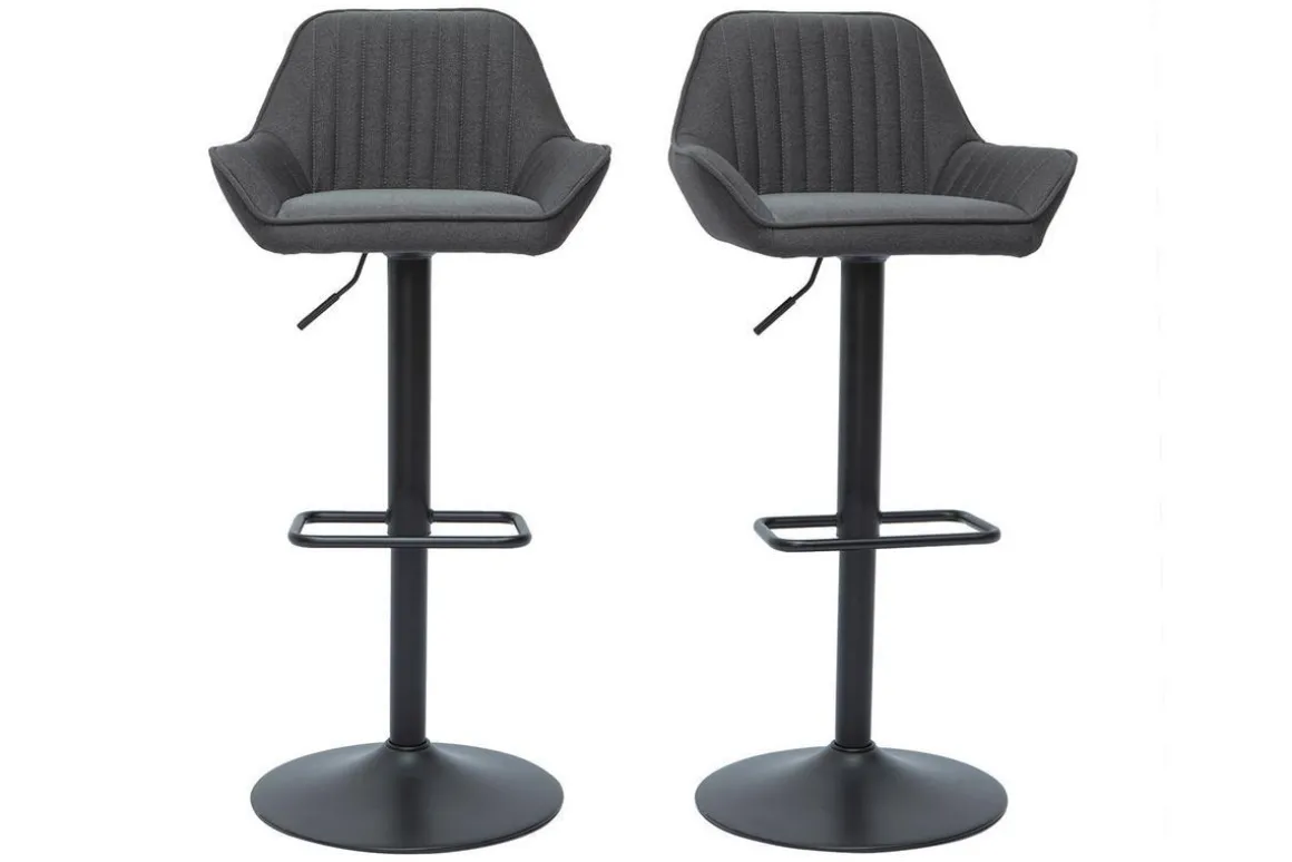 Ces tabourets de bar design en tissu gris anthracite et métal noir garantissent un véritable confort d’assise au quotidien. Dossier enveloppant (L45 x H28.5 cm), accoudoirs évasés et siège entièrement garni d’une mousse ferme (densité de l’assise 30 kg/m³), ce modèle de tabourets hauts invitent à la convivialité et au partage d’agréables moments bien attablé !