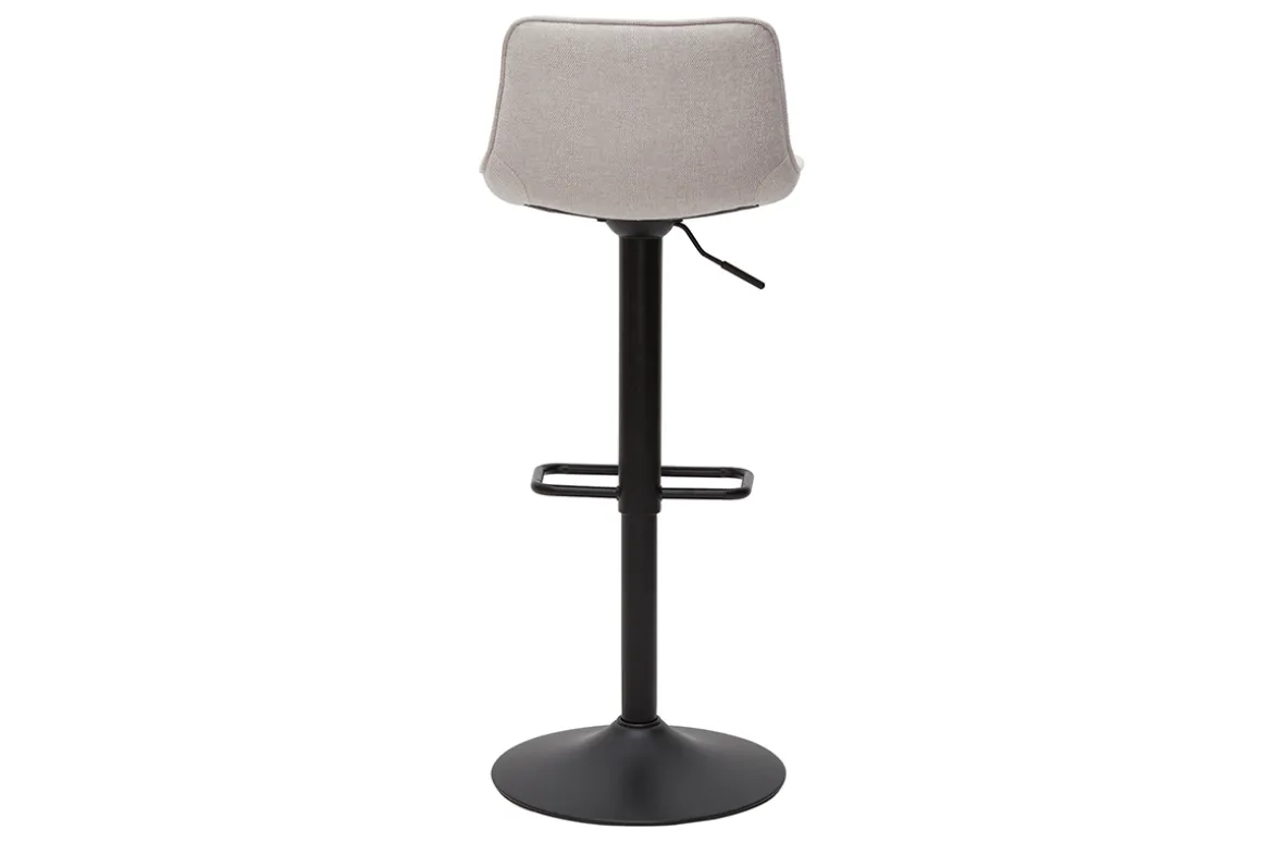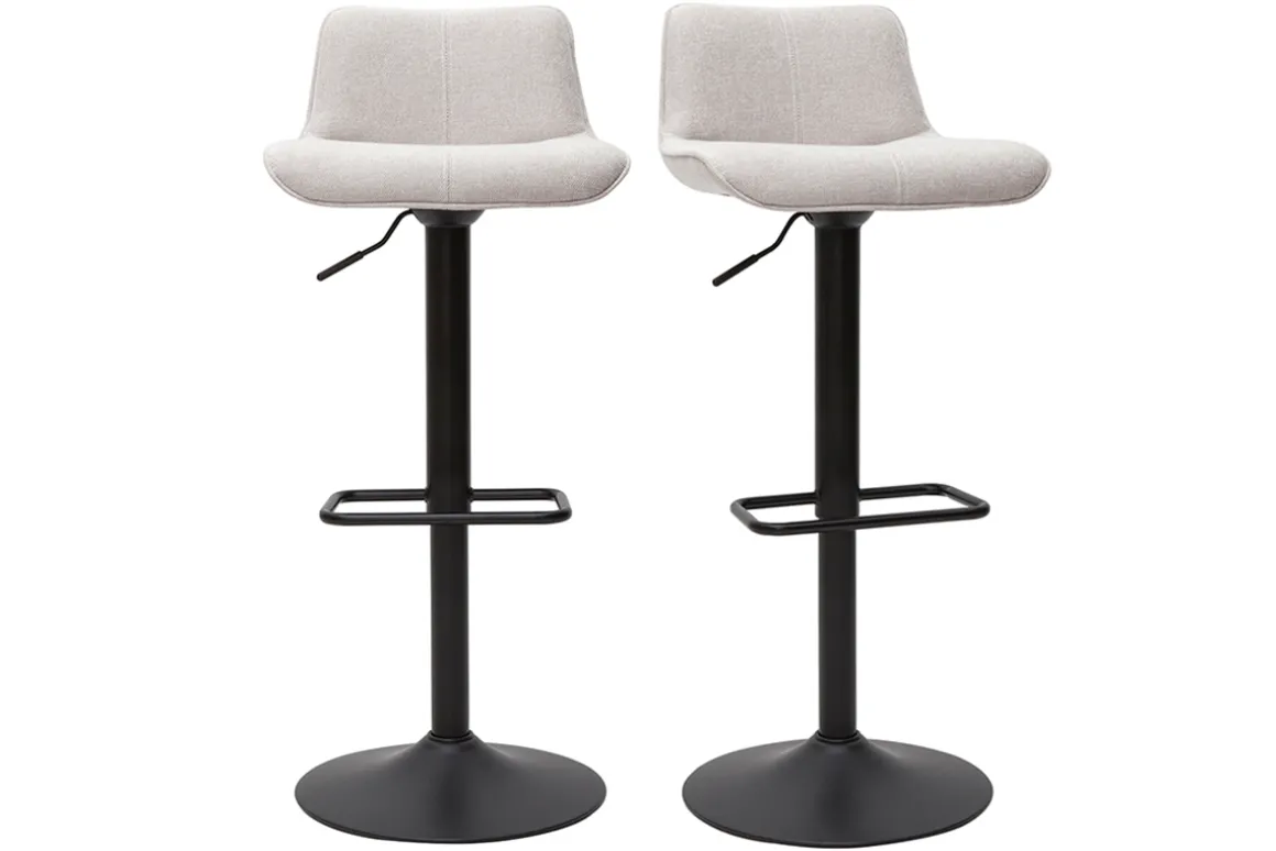 Tabourets de bar relevables en tissu velours texturé beige et métal noir vendus par lot de 2. Livrés prêts à monter.