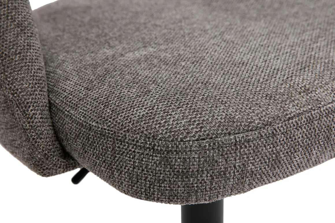 Tissu effet velours texturé gris et piétement métallique noir se rencontrent pour offrir des tabourets de bar dans l’air du temps. Ce mix & match harmonieux leur confère un look unique, autant chaleureux que moderne. Quant à leur silhouette, elle a été travaillée tout en courbes pour donner une belle légèreté visuelle à l’ensemble. Un sans faute !