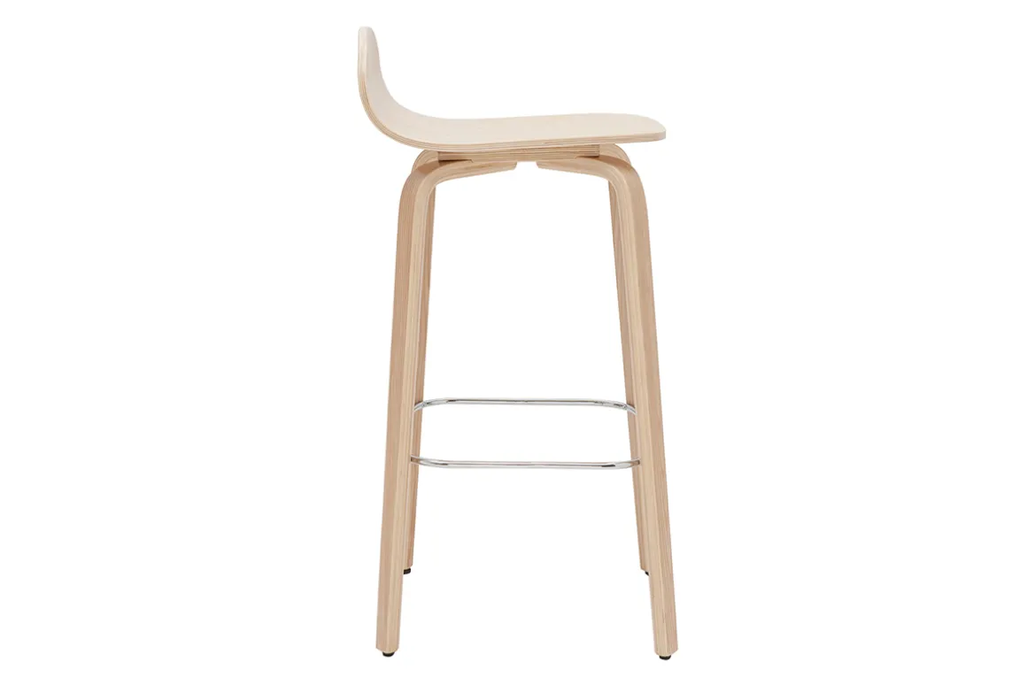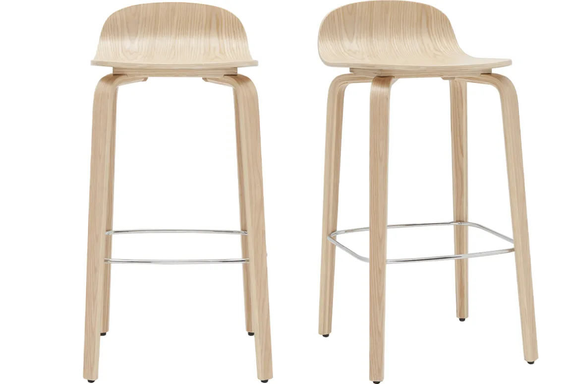 Savourez le plaisir de moments conviviaux confortablement installé ! À la fois aériens et robustes, ces tabourets de bar scandinaves assurent un accueil très apprécié ! Incurvée, la coque plaquée chêne est composée d’une large assise et d’un dossier bas. Pour permettre à chacun d’adopter la bonne posture – même en hauteur ! – le repose-pied en métal chromé, se fond avec discrétion dans le jeu graphique des quatre solides pieds contreplaqués chêne.