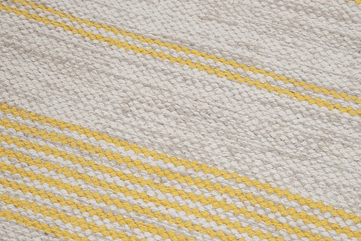 Synonyme de douceur et parfait pour réveiller un sol un peu sage, le tapis est un accessoire déco incontournable pour insuffler le renouveau ou valoriser une ambiance. Facile à vivre, CABOURG et sa combinaison de rayures jaunes sur fond beige sera idéal pour dynamiser votre intérieur. Ce petit tapis rectangulaire L50 x L80 cm au motif iconique, rayonnera autant dans une chambre à coucher en descente de lit cocooning, que dans un vestibule pour souligner un meuble de rangement ou délimiter une entrée. De quoi rappeler les beaux jours et l’ambiance bord de mer au quotidien !