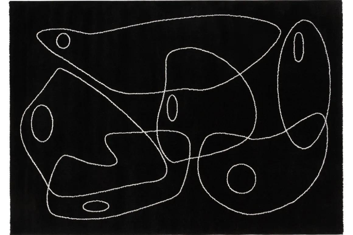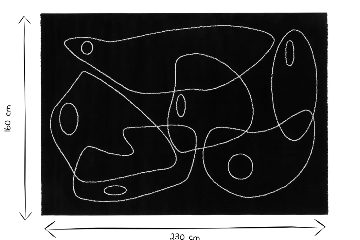 Véritable tableau de sol, le tapis ARTISTE nous plonge dans l’univers de la peinture abstraite. Son motif blanc sur noir s’apparente à une esquisse tracée à l’encre. Le contraste des couleurs renforce un peu plus la force expressive de cette inspiration line art.