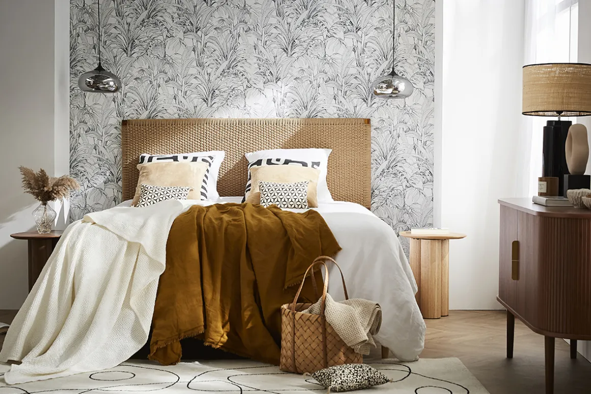 Evadez-vous avez la tête de lit FLAKA ! Authentique et chaleureuse, cette tête de lit en teck massif et corde de papier tressée est un intemporel de la chambre bohème. Réalisée selon des techniques ancestrales, FLAKA est une tête de lit artisanale qui possède le charme authentique et l’unicité du mobilier déco fabriqué à la main. La corde de papier est un matériau robuste qui imite parfaitement la fibre végétale et apporte une touche authentique à la décoration de la chambre.