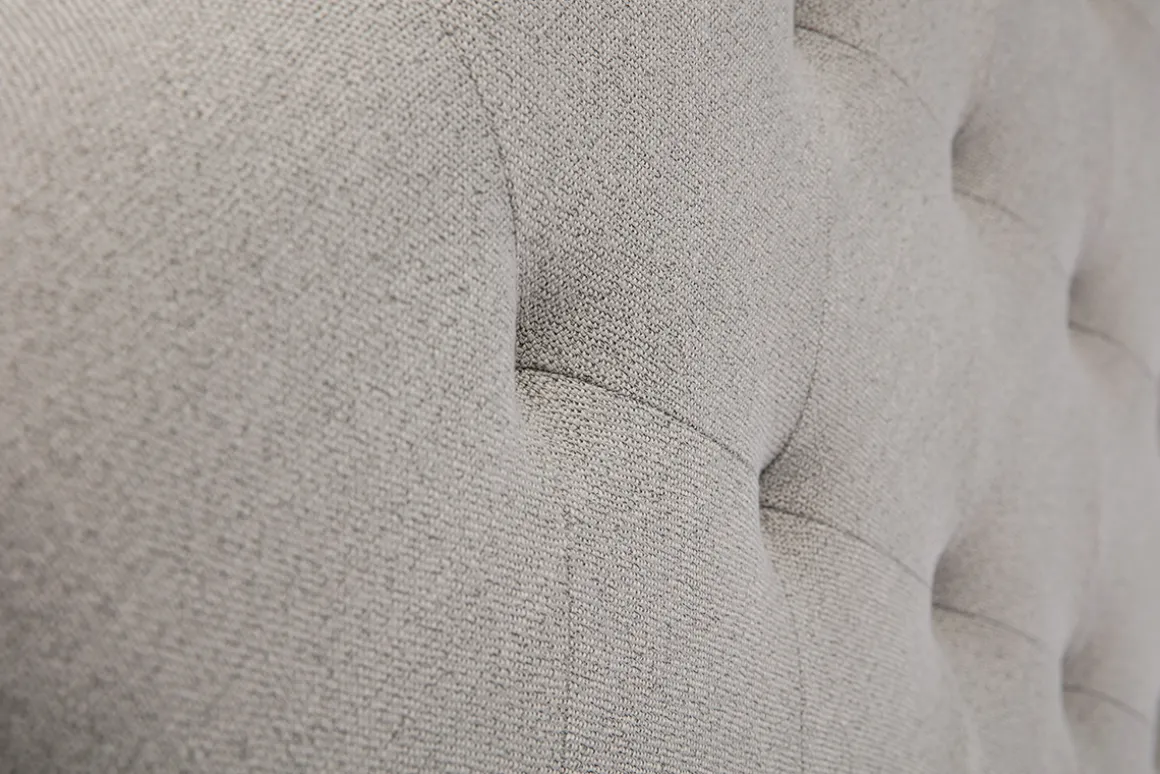 Cette tête de lit capitonnée en tissu apportera charme et cachet à votre intérieur. En effet, sa structure garnie d’une agréable mousse, vous permettra de profiter d’un vrai moment de bonheur et de détente grâce à son dossier moletonné – idéal pour vos soirées lecture et petits-déjeuners au lit ! Revêtue d’un tissu (100% polyester) au toucher très agréable, cette tête de lit gris clair donnera une touche cosy mais aussi glamour chic à la décoration d’une chambre à coucher.
